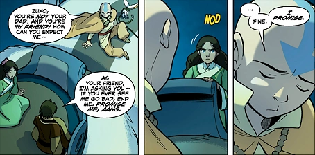 Aang reluctantly agreed to end Zuko's life should he have become like Ozai.